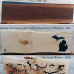 • Wood charcuterie, cutting, and fractal boards crafted from locally sourced woods