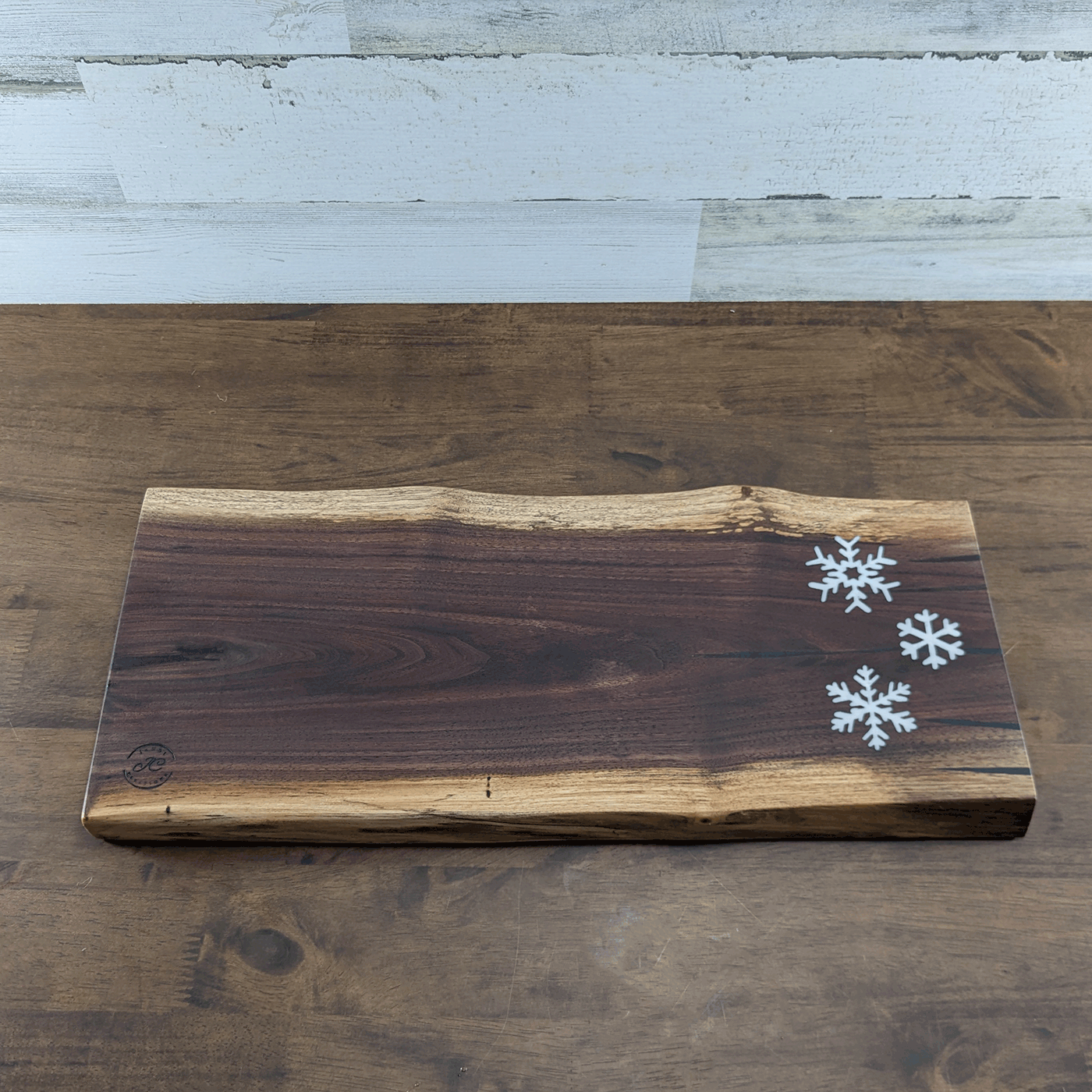 / Black Walnut Charcuterie and Cutting Board with Snowflakes
