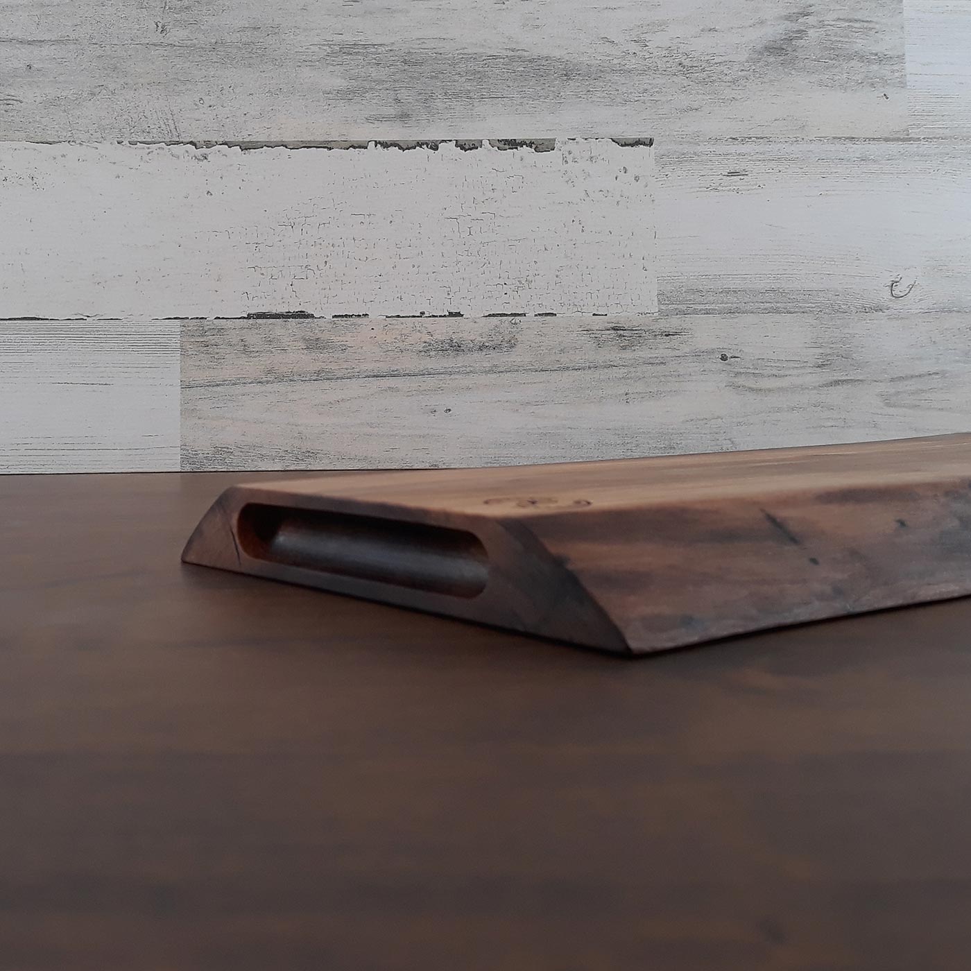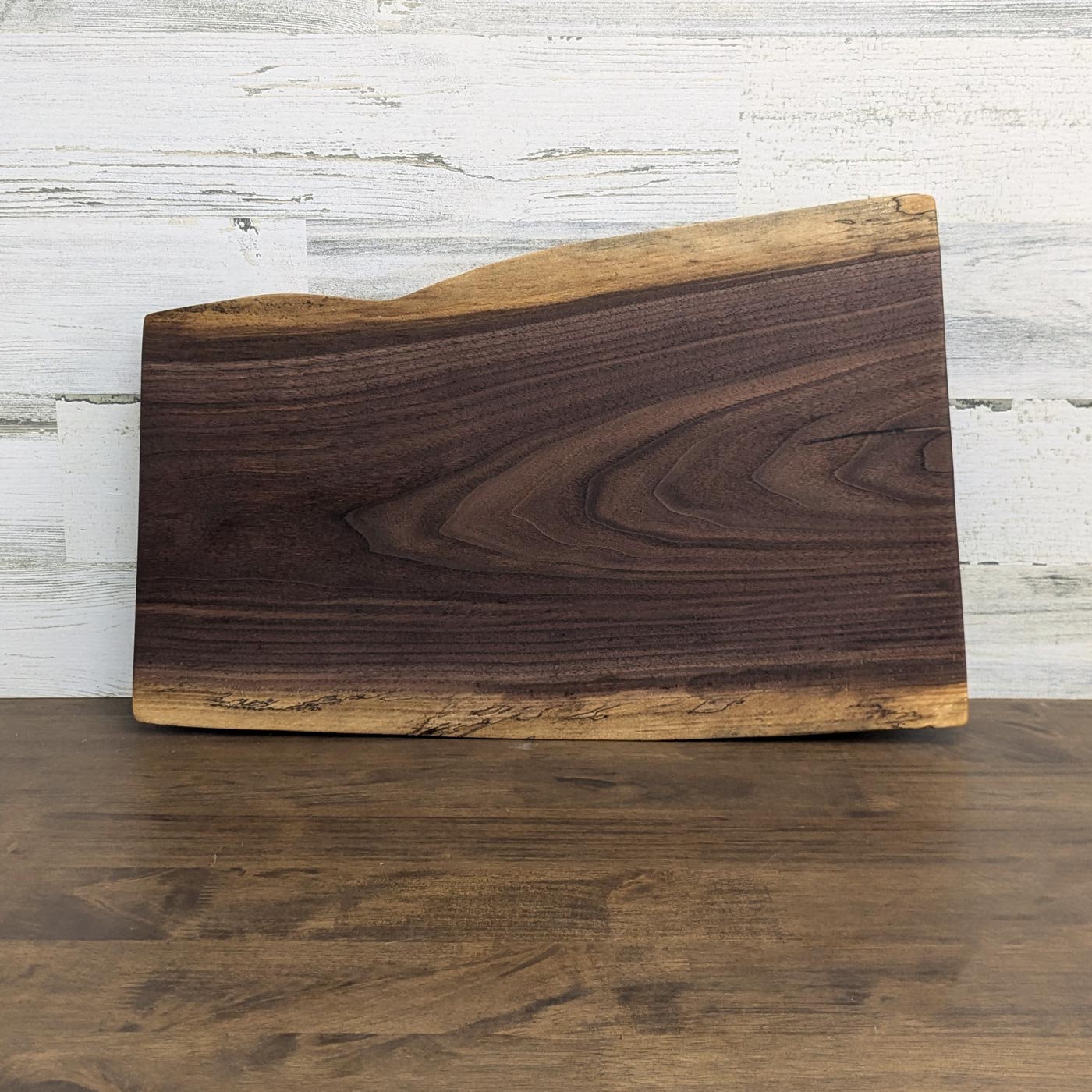 Wash your black walnut charcuterie and cutting board with a mild dish soap and water. NEVER PLACE WOOD BOARD IN A DISHWASHER! Dry immediately with a cloth. Place board on its side, do not lie flat, until completely dry to prevent warping. Use our Board Balm, or a comparable product, whenever the board feels dry to the touch.